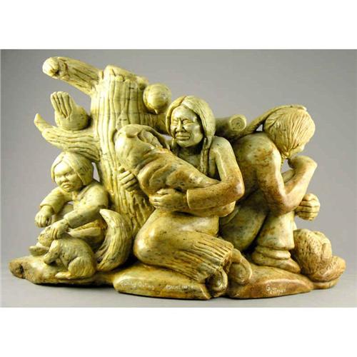 [Canadian b. 1946] FAMILY OUTING, PSALMS 100:3 Soapstone sculpture 10.5 in. high. Signed & titled.