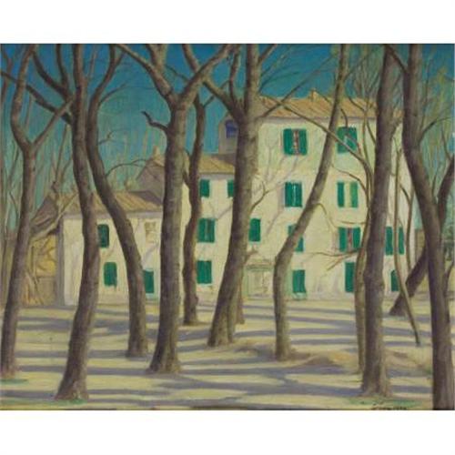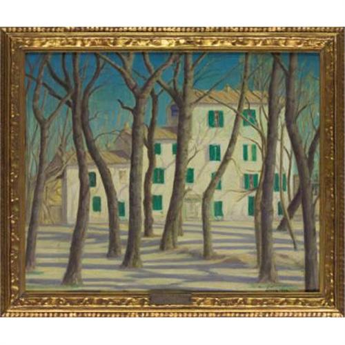 <B>CLIFFORD SNYDER</B></I><BR><I>Country Club, Avignon France</B></I>, 1928<BR>Oil on canvas<BR>24 x 28-1/2 inches (61.0 x 72.4 cm)<BR>Signed lower right: <I>Snyder</B></I><BR> <BR>PROVENANCE:<BR>Milwaukee Art Institute, Milwaukee, Wisconsin (label verso)<BR><B>Condition Report:</B> Minor surface scratches and grime.<BR><BR><b>Shipping:</b> Framed - without Glass, Medium (<a target="_blank" href="http://www.heritageauctions.com/common/shipping.php">view shipping information</a>)