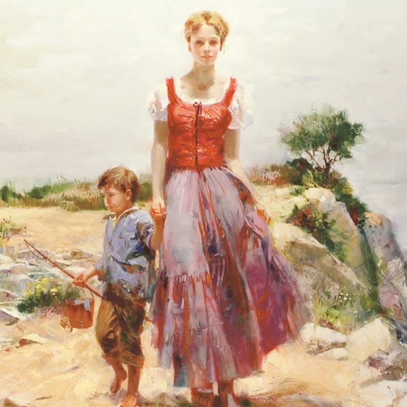 "Cliffside Retreat" is a limited edition giclee on paper, numbered and hand signed by Pino (1939-2010). Includes Certificate of Authenticity! Measures approx. 20" x 16" (with border); 18" x 14" (image).