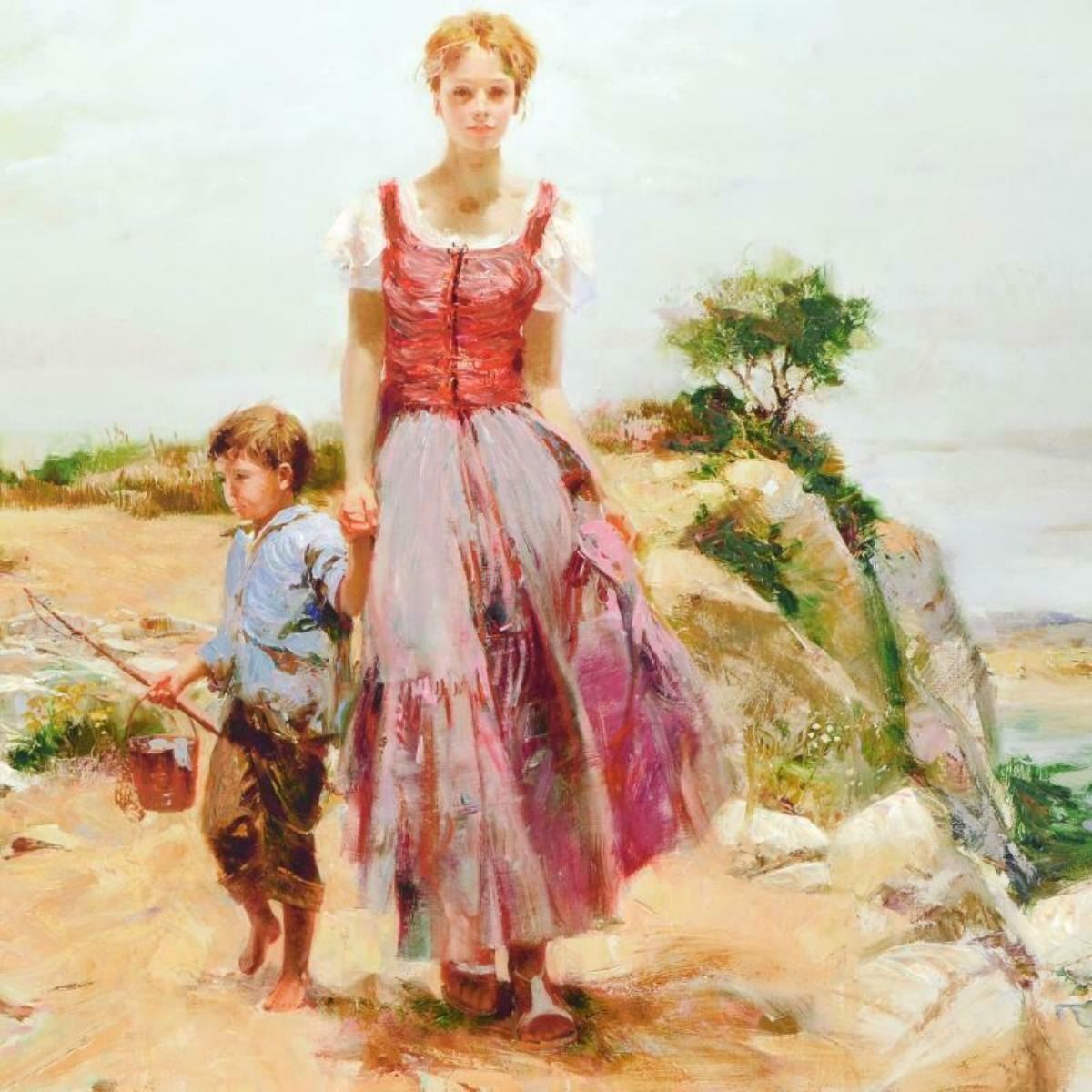 "Cliffside at the Sea" is a limited edition giclee on stretched canvas that has been hand-embellished by Pino himself, AP Numbered and Hand signed by Pino (1939-2010). Includes Certificate of Authenticity. Measures approx. 40" x 32" (image).