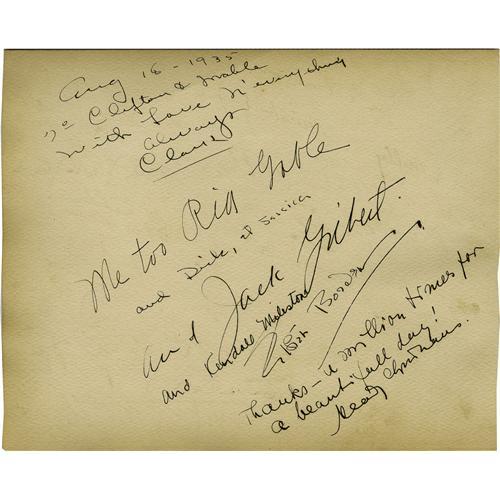 Clifton Webb Autographs(Lot #9). Clark Gable has Clark Gable Pays a Visit to the Webbs.