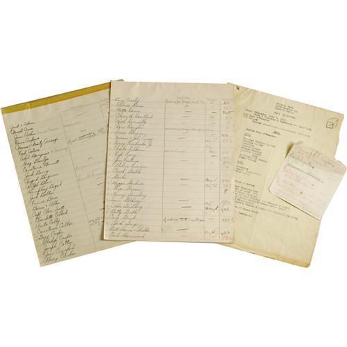 <B>Clifton Webb Dinner party Menu and Guest List.</B></I> Well regarded as a gifted actor, Clifton Webb was also well known for throwing some of the most sensational Hollywood parties of the 1940s, with a circle of friends that was a veritable Who's-Who-of-Hollywood. Featured is a typed, one-page menu for one such party, plus an eight-page handwritten guest list that features such names as Dana Andrews, Fred Astaire, Ingrid Bergman, Humphrey Bogart, Gary Cooper, Cary Grant, Hedda Hopper, Otto Preminger, Jack Warner, Darryl Zanuck, and more than 100 others. In Fine to Very Fine condition with mild to moderate wear and tanning to the menu, and some light wear, tanning, and a piece of tape to the guest list<BR><BR><b>Shipping:</b> Flat Material, Small (<a target="_blank" href="http://www.heritageauctions.com/common/shipping.php">view shipping information</a>)