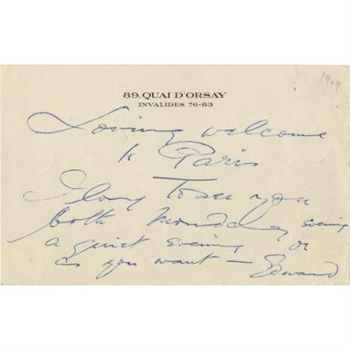<B>Clifton Webb Photo and Letter From Edward, Duke of Windsor.</B></I> Includes a b&w 8" x 8" photo of Webb with his close friend, the Duke of Windsor, as well as a letter from Edward to Webb, circa 1949, handwritten and signed in blue ink. In overall Very Fine condition with mild wear and tanning.<BR><BR><b>Shipping:</b> Flat Material, Small (<a target="_blank" href="http://www.heritageauctions.com/common/shipping.php">view shipping information</a>)