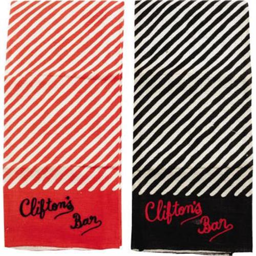 <B>Clifton Webb's Bar Towels.</B></I> A pair of bar towels, one red-and-white and the other black-and-white, owned by Webb but never used by him. Both are monogrammed "Clifton's Bar," and in Excellent condition. <I>From the Clifton Webb Estate.</B></I> <I>Accompanied by LOA from PSA/DNA.</B></I><BR><BR><b>Shipping:</b> Flat Material, Small (<a target="_blank" href="http://www.heritageauctions.com/common/shipping.php">view shipping information</a>)