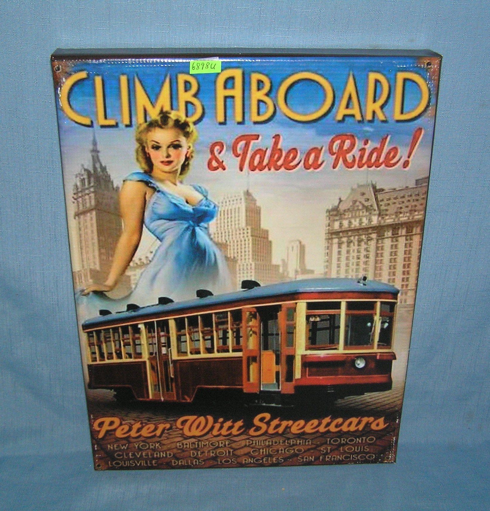 Climb aboard and take a ride framed canvas sign est. value $50.00-$60.00