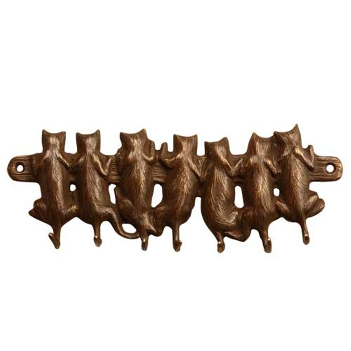 Climbing Cats Key Hook - 1"H 8"W 3"D - Brass