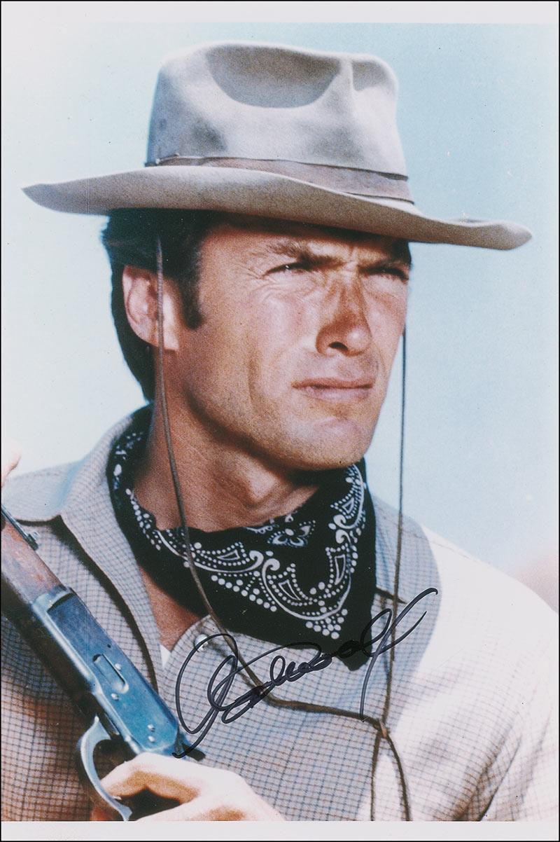 Color satin-finish 8 x 12 photo of Eastwood from Rawhide, signed in-person in black felt tip. A trivial ding to lower right corner tip, otherwise very fine condition.
