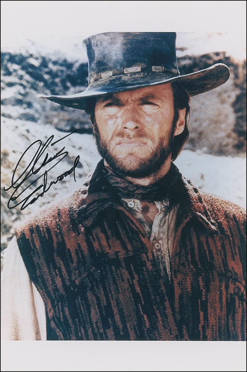 Color satin-finish 8 x 12 photo of Eastwood from A Few Dollars More, signed in-person in black felt tip. In very fine condition.