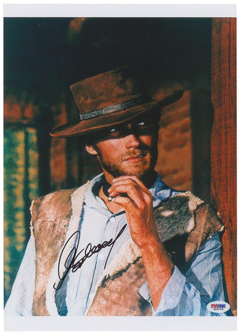 Color glossy 10 x 14 photo from one of his early westerns, signed in black felt tip. In fine condition, with a PSA/DNA authentication label affixed to bottom corner. Accompanied by a certificate of authenticity from PSA/DNA.