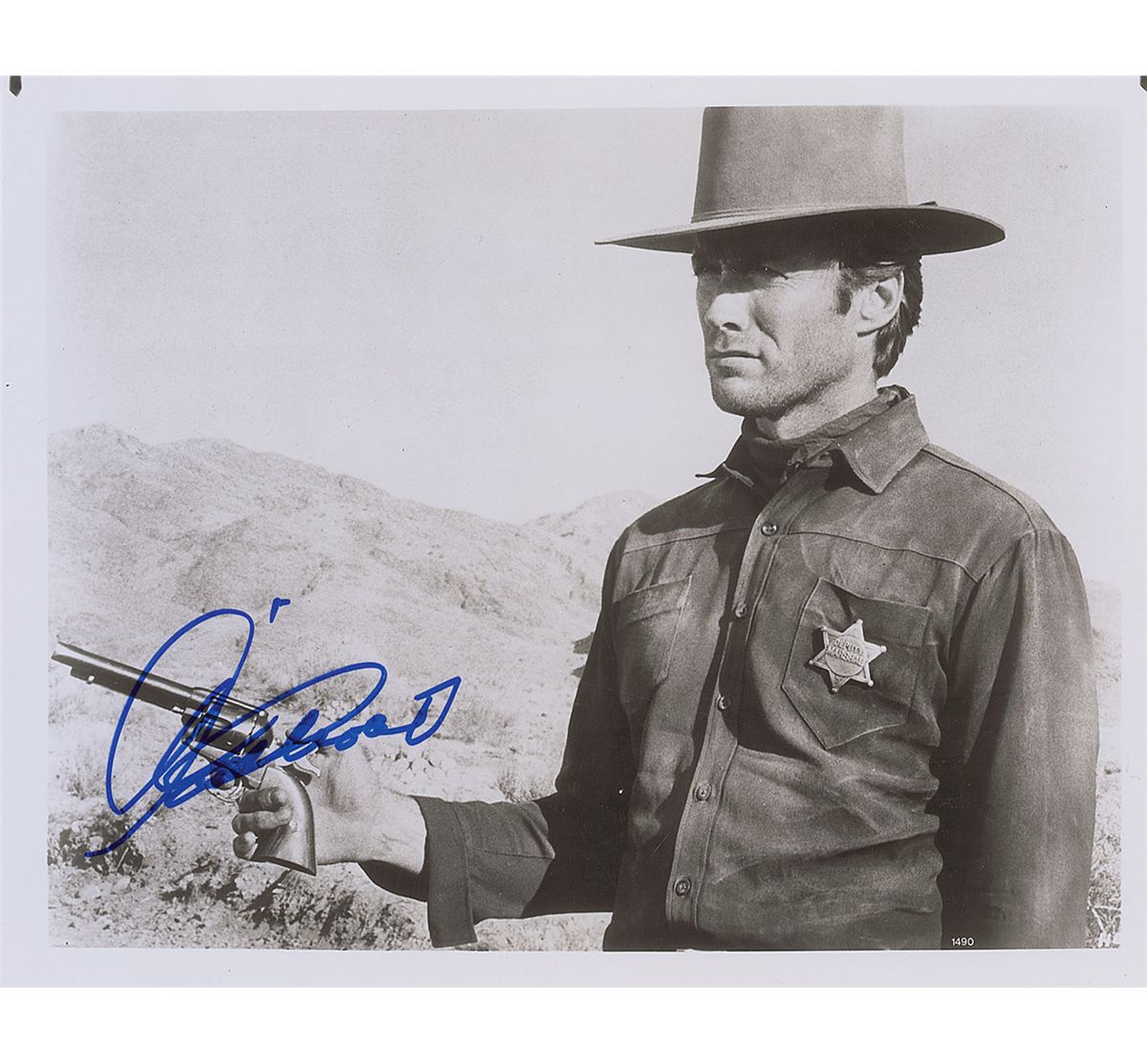 Glossy 10 x 8 photo of Eastwood from Hang Em High, signed in blue felt tip. In very fine condition.