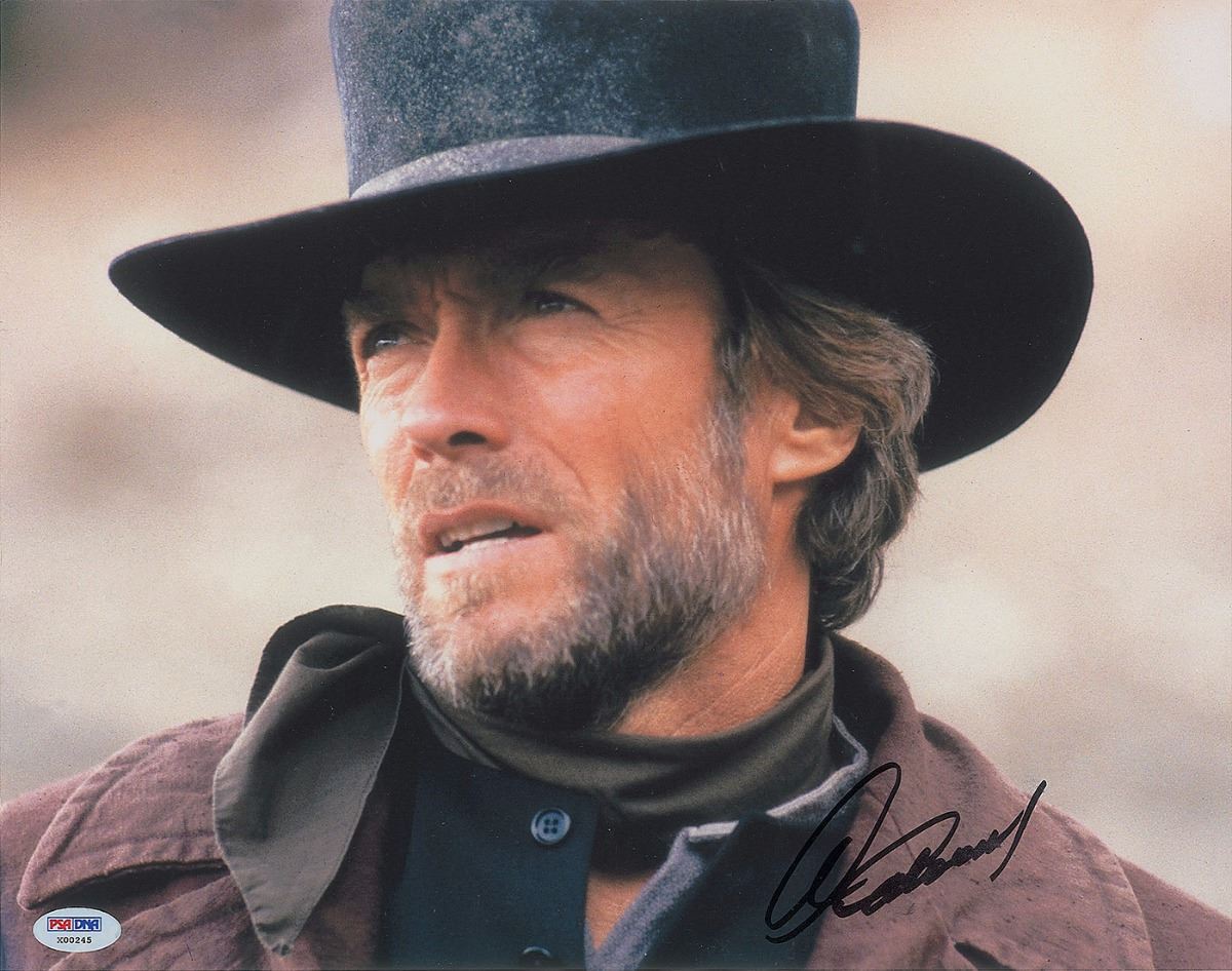 Color satin-finish 14 x 11 photo of Eastwood as Bill Munny from the 1992 film Unforgiven, signed in black felt tip. In fine condition. Accompanied by a full letter of authenticity from PSA/DNA.