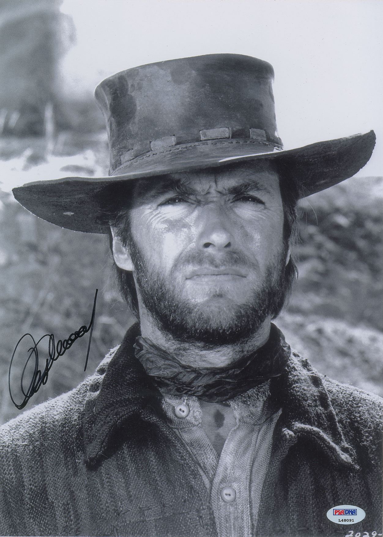 Glossy 10 x 14 photo of Eastwood as Hogan in the 1970 Western film Two Mules for Sister Sara, signed in black felt tip. In fine condition, with a couple of small creases in Eastwood's beard and a PSA/DNA label affixed to the lower corner. Accompanied by a certificate of authenticity from PSA/DNA.