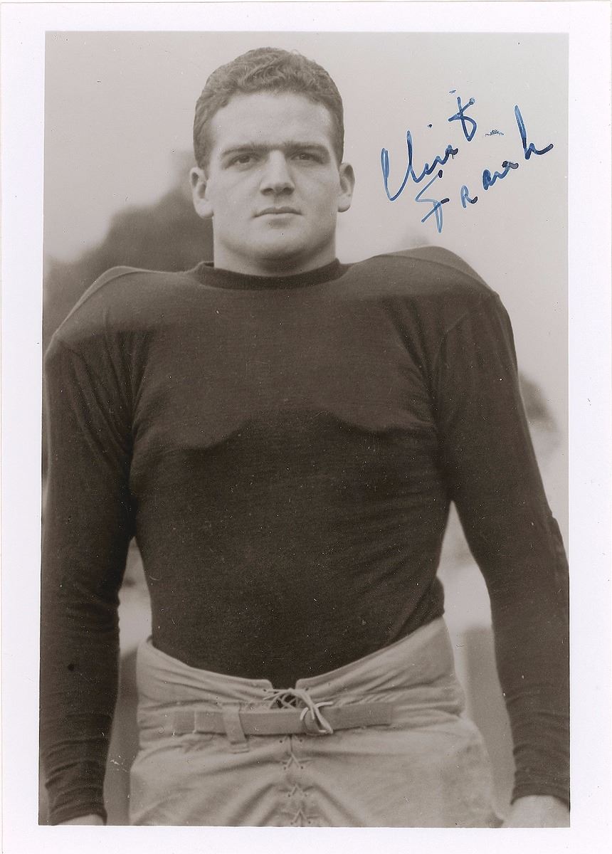 Two glossy 5 x 7 photos of Clint Frank and Billy Vessels, one signed in black ink by Frank, and the other signed in purple felt tip by Vessels. In overall fine condition.