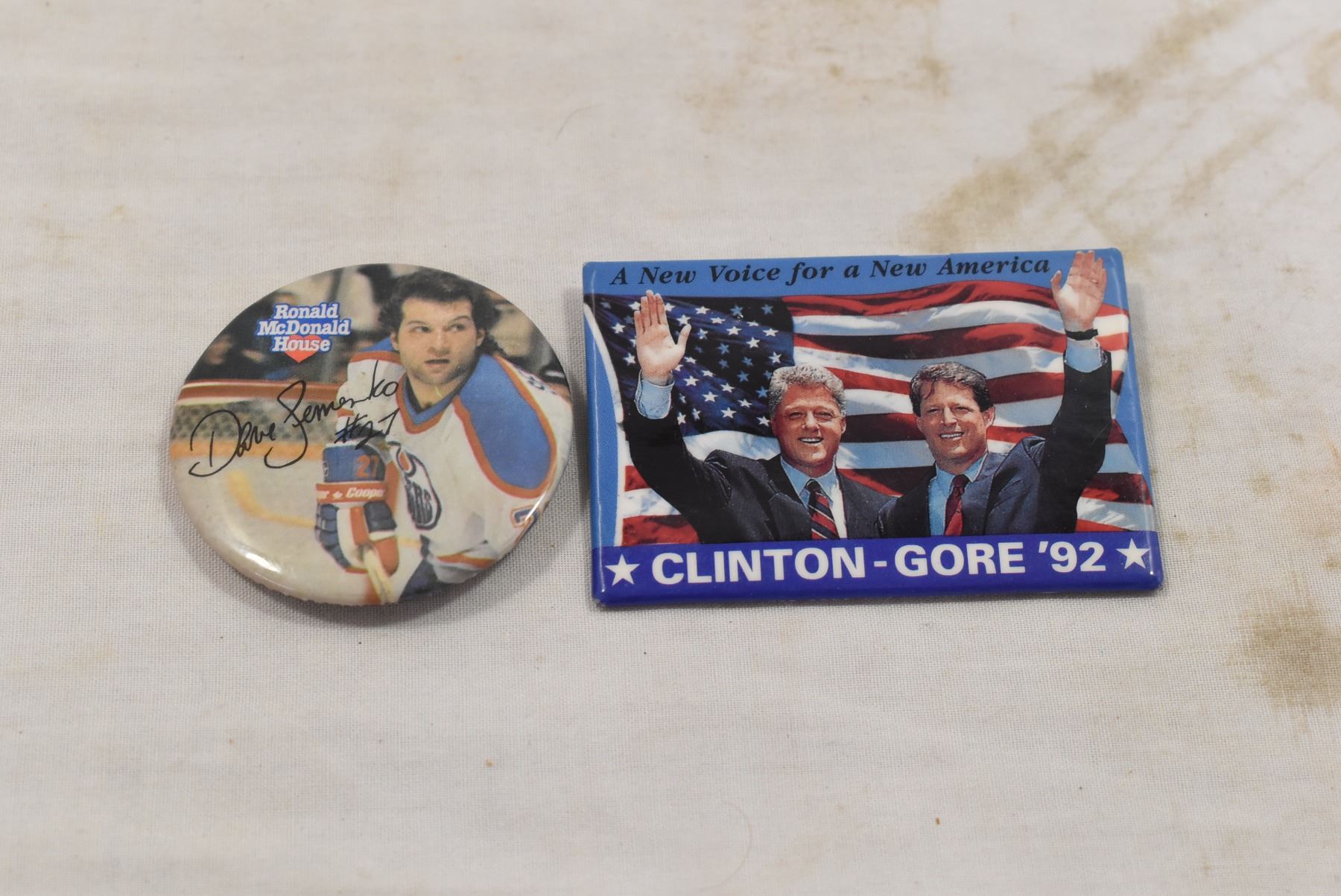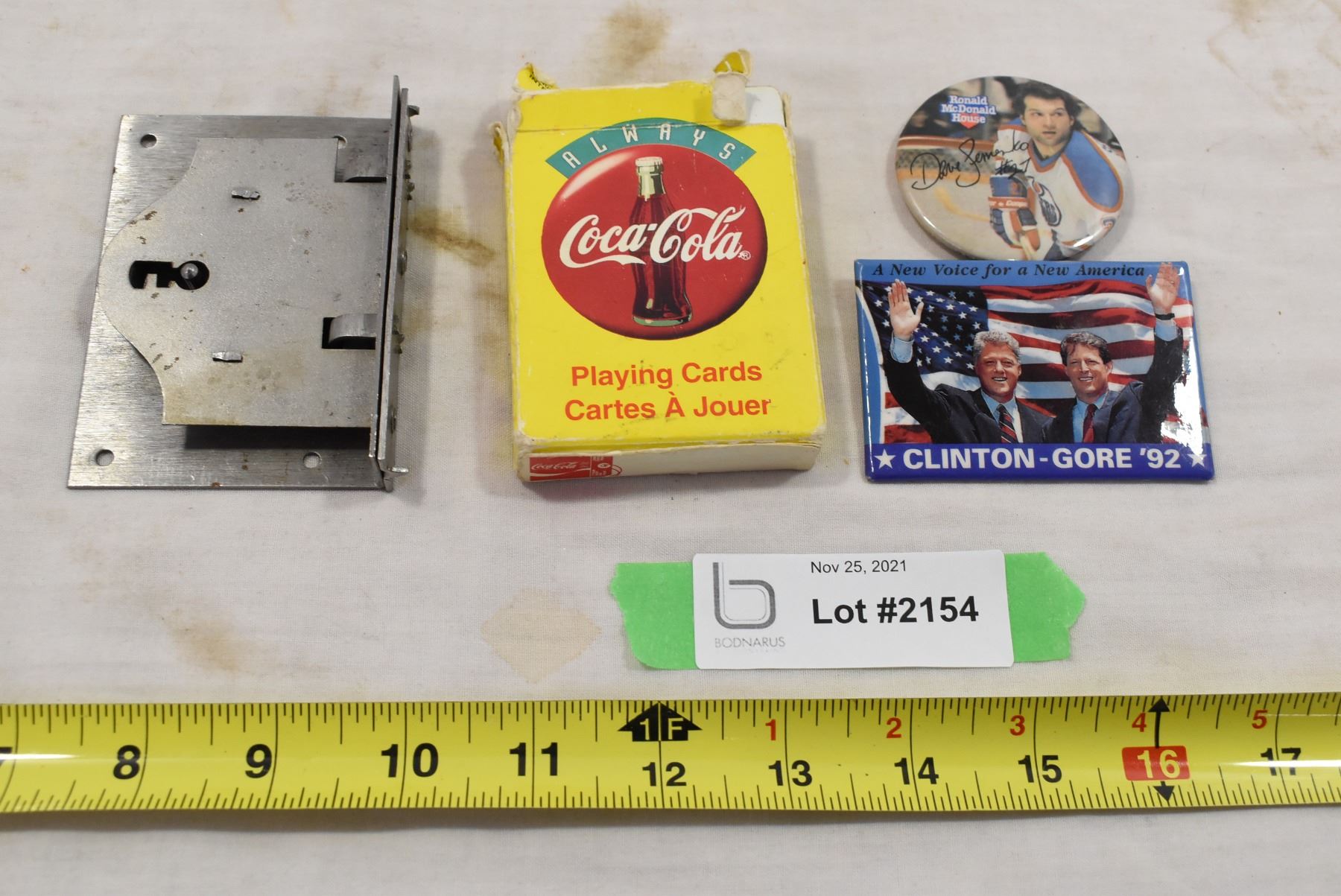 Clinton Gore Button, Vintage Oilers Button, Coca Cola Cards
