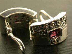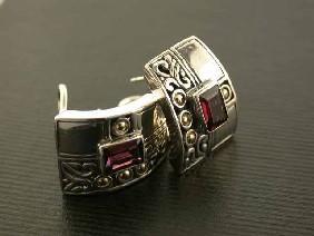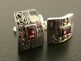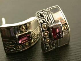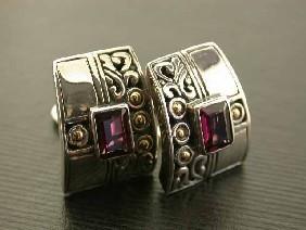 Silver and 18k Gold Earrings with Rhodolite and the Measurement is 3/4 x 1/2 inch