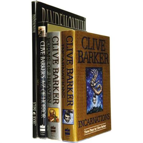 <B>Clive Barker Four Signed First Editions.</B></I> Includes the following:<BR><B><I>Pandemonium.</B></I></B></I> (Forestville, CA: Eclipse Books, 1991), first edition, 54 pages, black boards, 4to, dust jacket. Condition (book/ dj): fine/ very good.<BR><B><I>Incarnations.</B></I></B></I> (New York: Harper Prism, 1995), first edition, 366 pages, blue boards, 8vo, dust jacket. Condition (book/ dj): fine/ fine.<BR><B><I>Forms of Heaven.</B></I></B></I> (New York: Harper Prism, 1996), first edition, 378 pages, grey boards, 8vo, dust jacket. Condition (book/ dj): fine/ fine.<BR><B><I>Clive Barker's A-Z of Horror.</B></I></B></I> (New York: Harper Prism, 1997), first edition, 256 pages, black boards, 8vo, dust jacket. Condition (book/ dj): fine/ fine.<BR><BR><BR><b>Shipping:</b> Books & Catalogs (<a target="_blank" href="http://www.heritageauctions.com/common/shipping.php">view shipping information</a>)