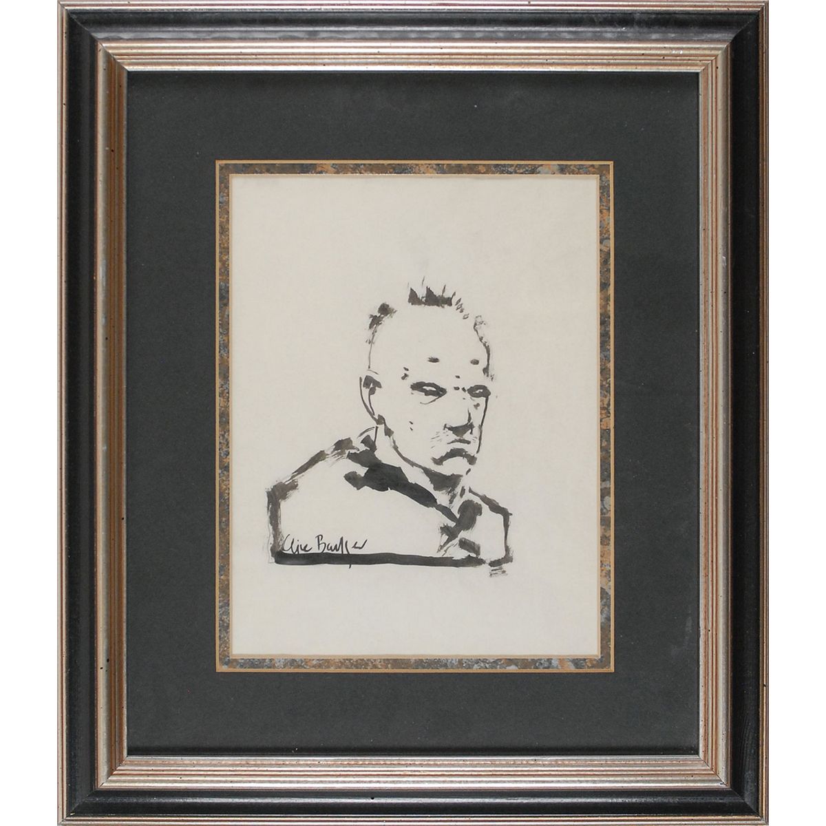 Original hand-painted ink artwork showing a head-and-shoulders portrait of a man on an off-white 6.5 x 8.75 sheet, signed in the lower left. Attractively double-matted and framed to an overall size of 13 x 15. In fine condition.