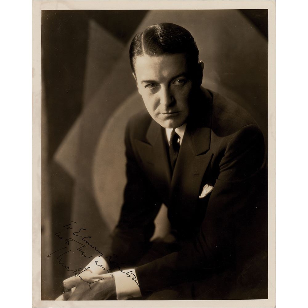 Vintage glossy 8 x 10 Paramount Pictures publicity photo of the distinguished British stage and screen actor, signed and inscribed in fountain pen, "…with best wishes, Clive Brook.†Reverse bears a studio stamp. In fine condition.