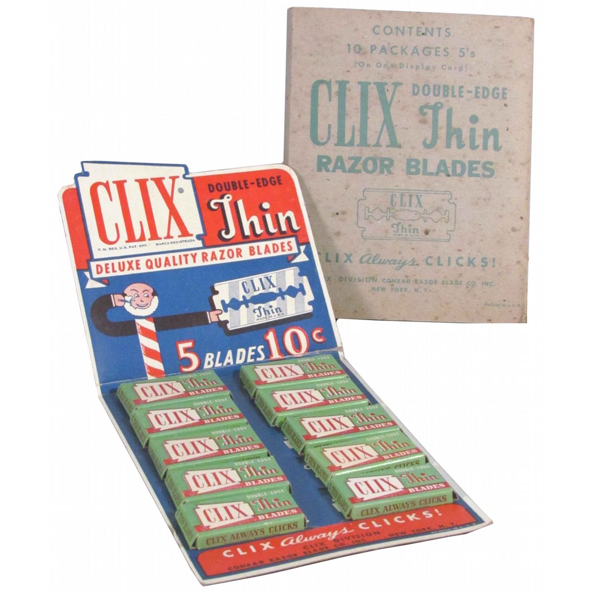 Clix Thin Razor Blade Cardboard Store Display with product. Comes in original shipping sleeve. 5 1/2 X 12 inches.