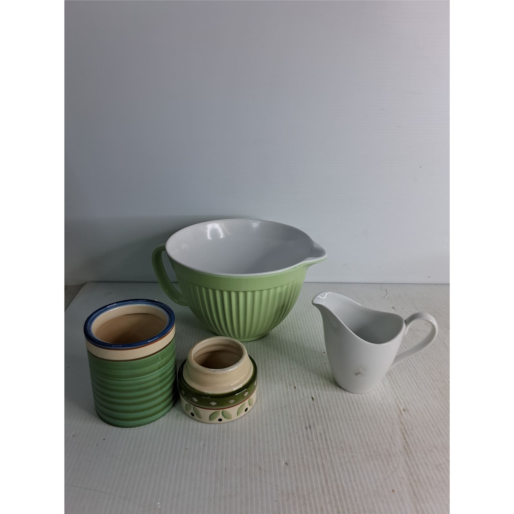 Clock, Assorted Kitchen Supplies, Wooden Knife- As Is