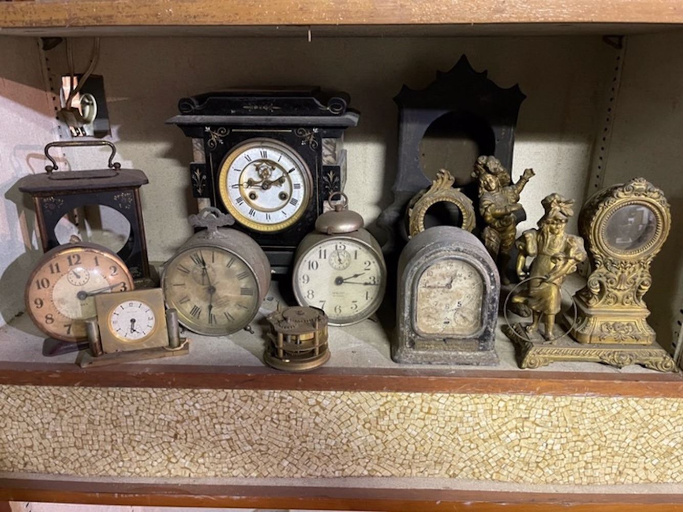 Collection of shelf clocks from the lifetime collection. All from what we named the mystery room, the family never realized it was there and we had to break in to get in. Selling as found!