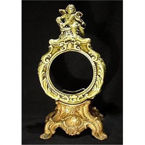 Beautiful piece in Majolica and Bronze Base. Probably to use with a clock in the center. In very good conditions, with very little chips without any crack. Representing an angel in the top.