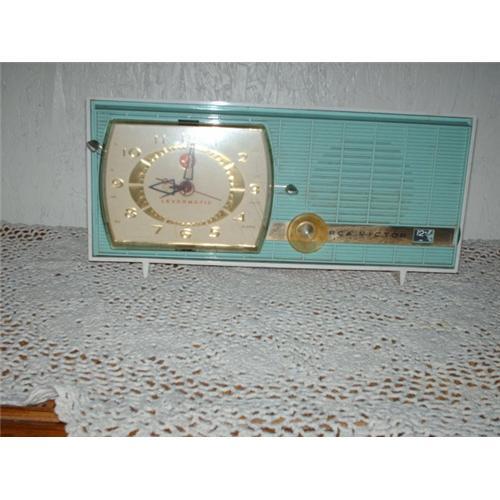 RCA Victor clock radio In good condition with a small crack across top. This radio plays great with great sound and the clock runs good. Measures 13.5 across and 6.5 inches tall. RCA levermatic with United States patent. Radio Corporation of America, Camden 8,New Jersey. Serial# 085253 model C-3HE.1950 circa.