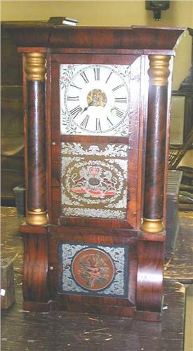 Rosewood grained case with reverse painted glass. Partial lable C. Spring, successor to Birge, Peck & Co. Some repaint and veneer repair.