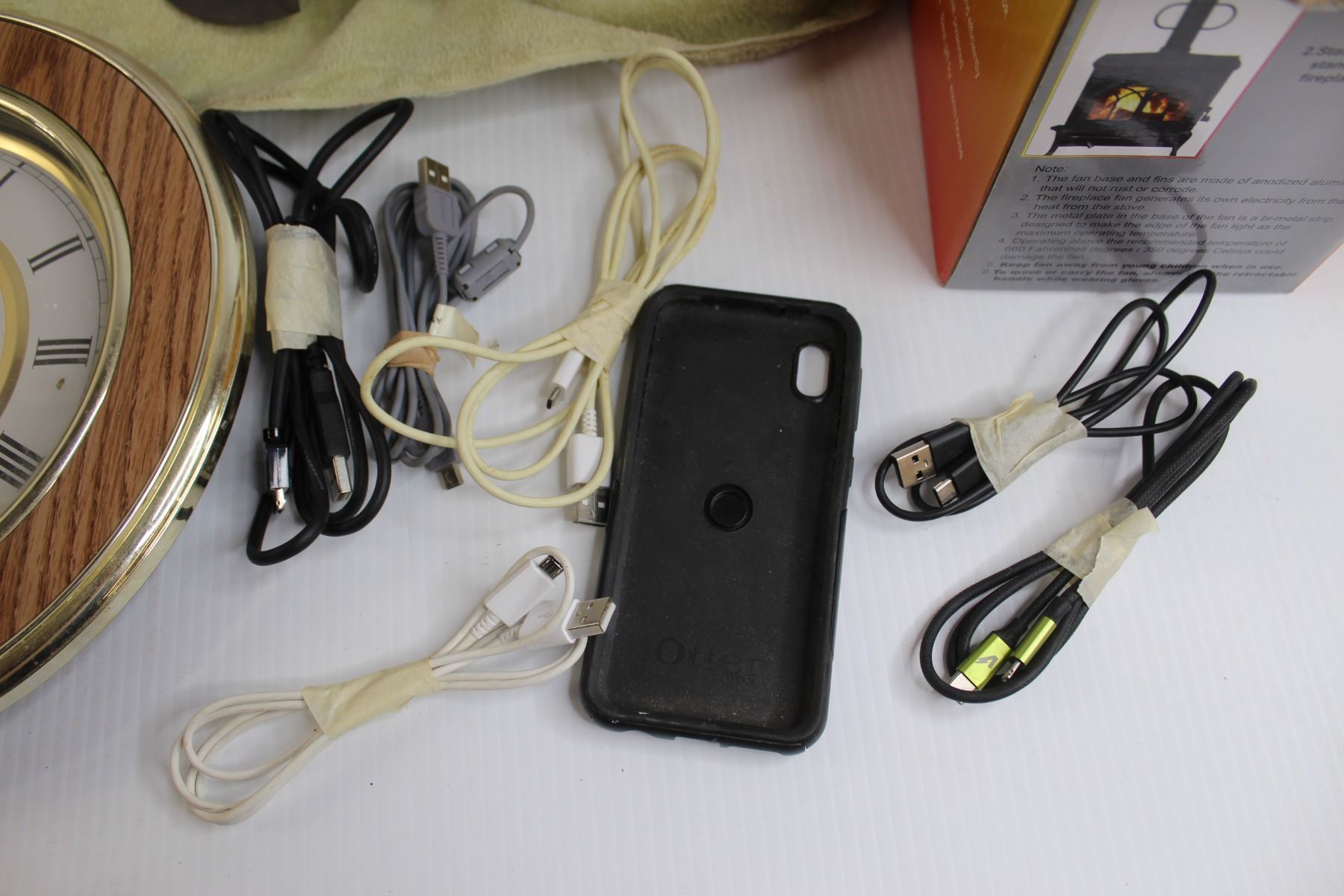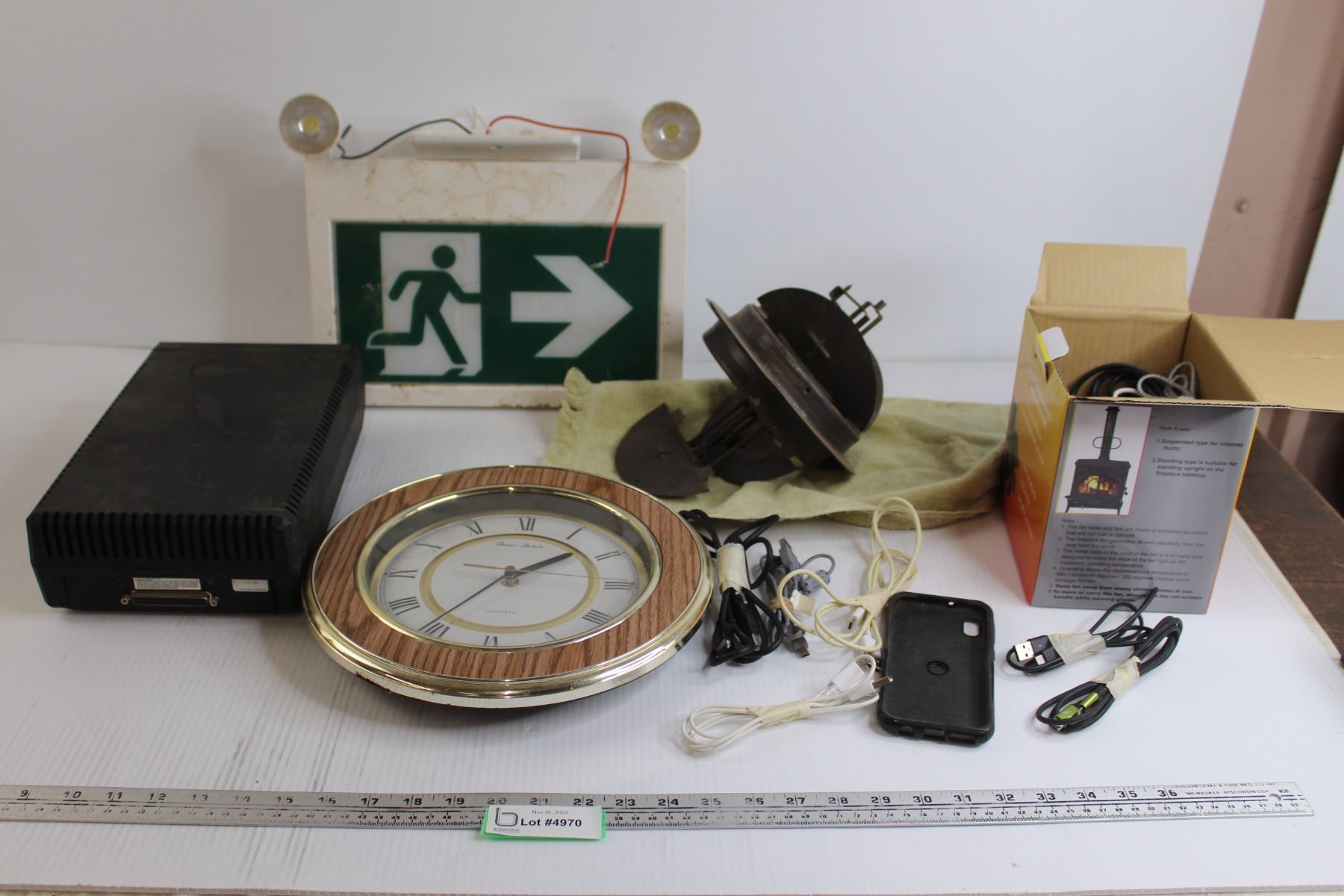 Clock - Works, (20+) Phone Chargers - Apple and Android, Exit Sign, Misc.