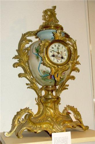 Pendule de style Louis XV en bronze doré et porcelaine avec décors champêtres, mouvement de Paris et sonnerie heures et demies, cadran émail de plusieurs couleurs, époque 1900