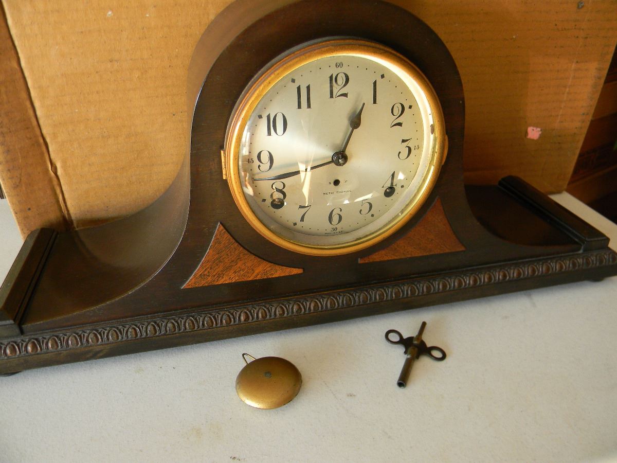 Seth Thomas T/S mantle closk/nice/with key and weight; works