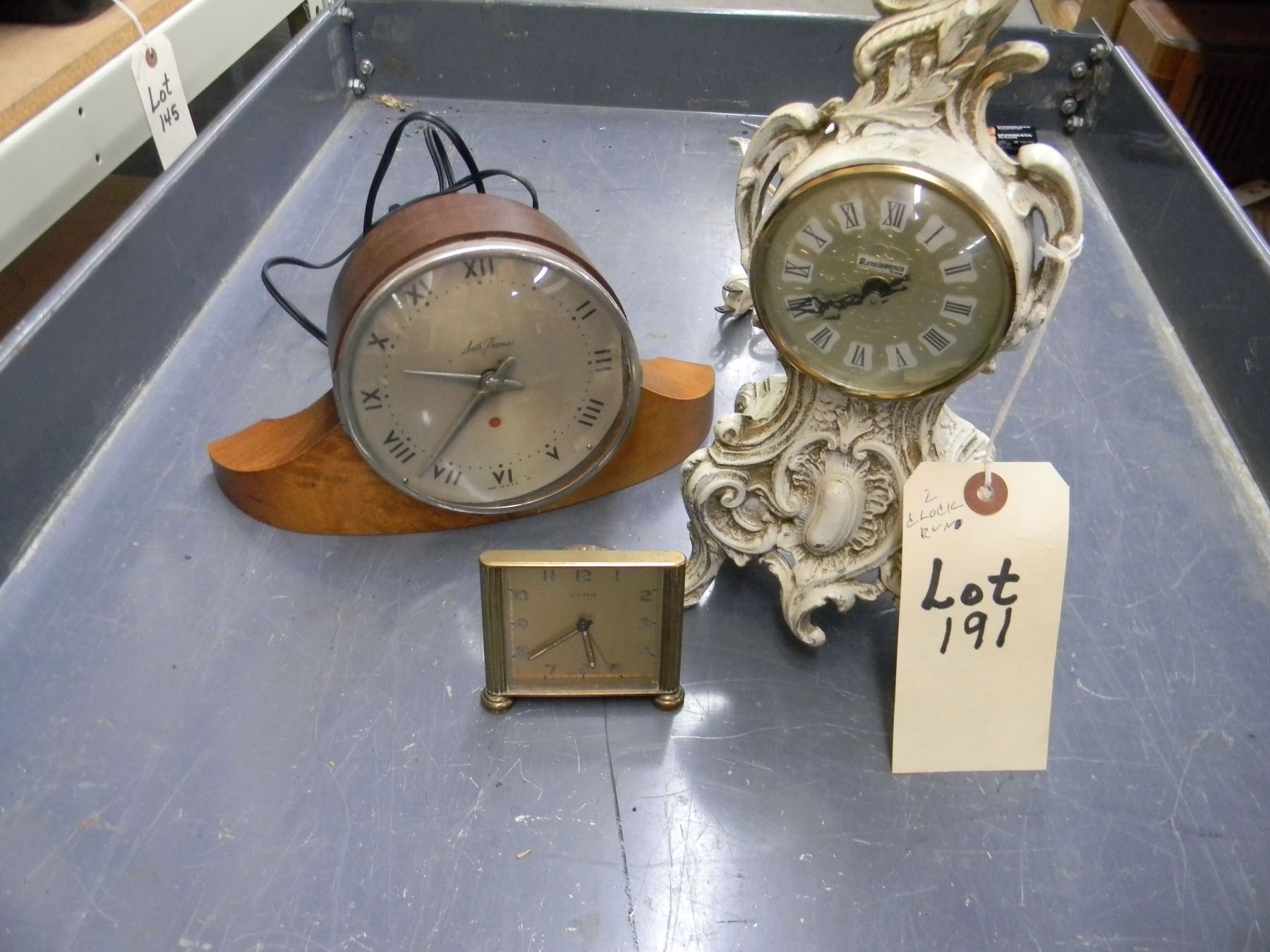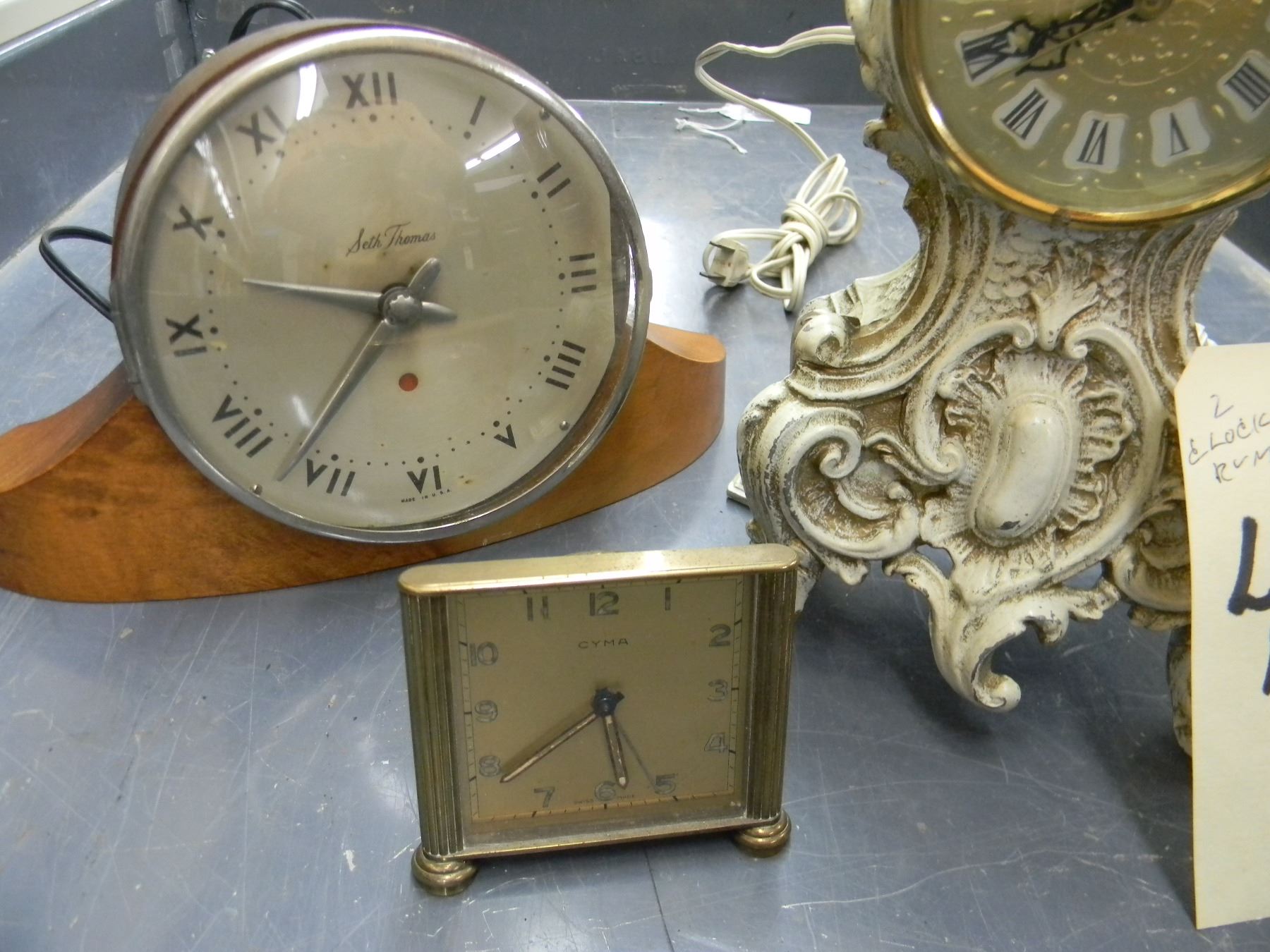 Flat of 3 clocks; Renaissance, Agma, Seth Thomas; two work