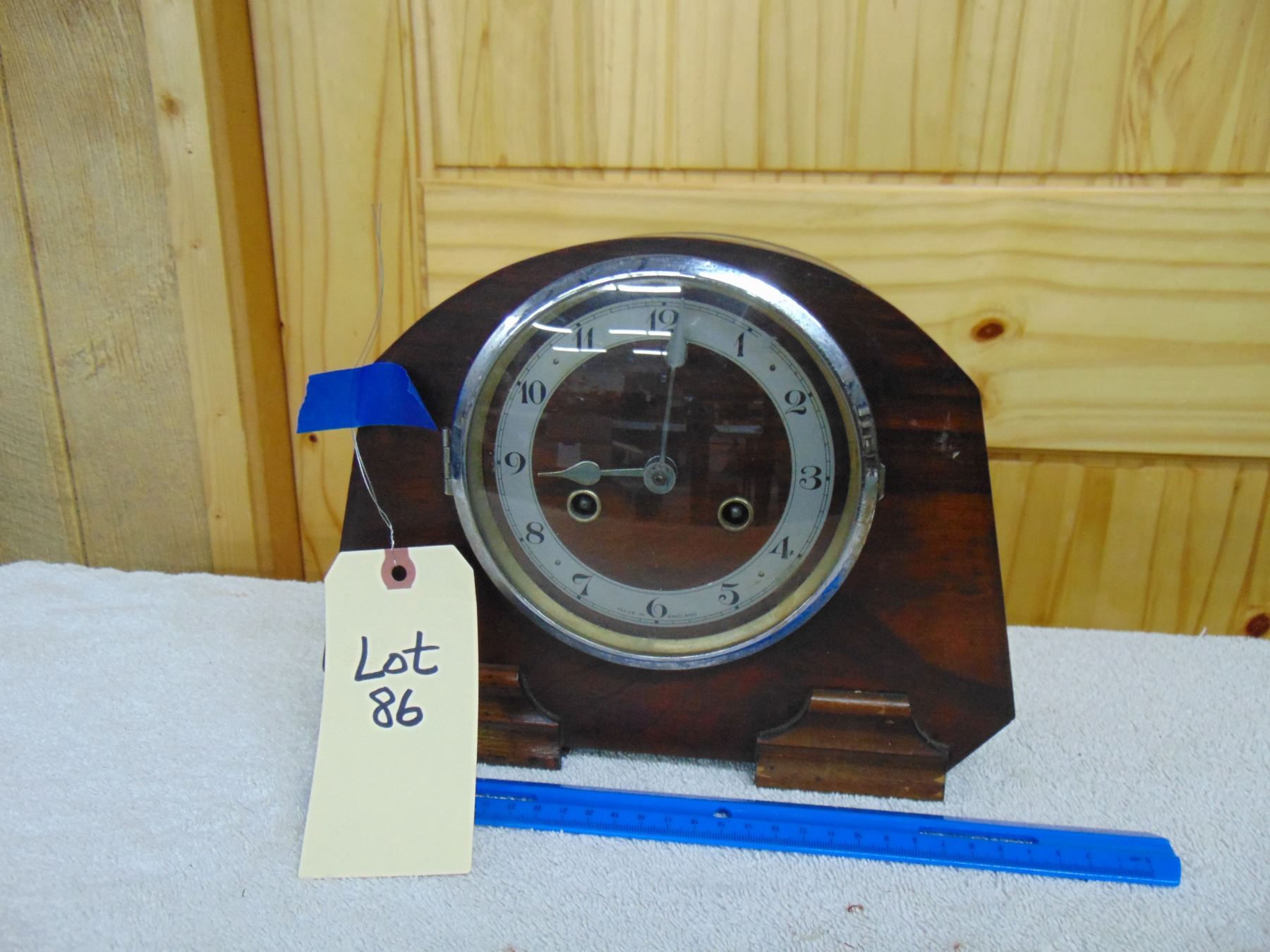 English Time and Strike mantel clock; includes key and pendulum; clock runs, but needs repair
