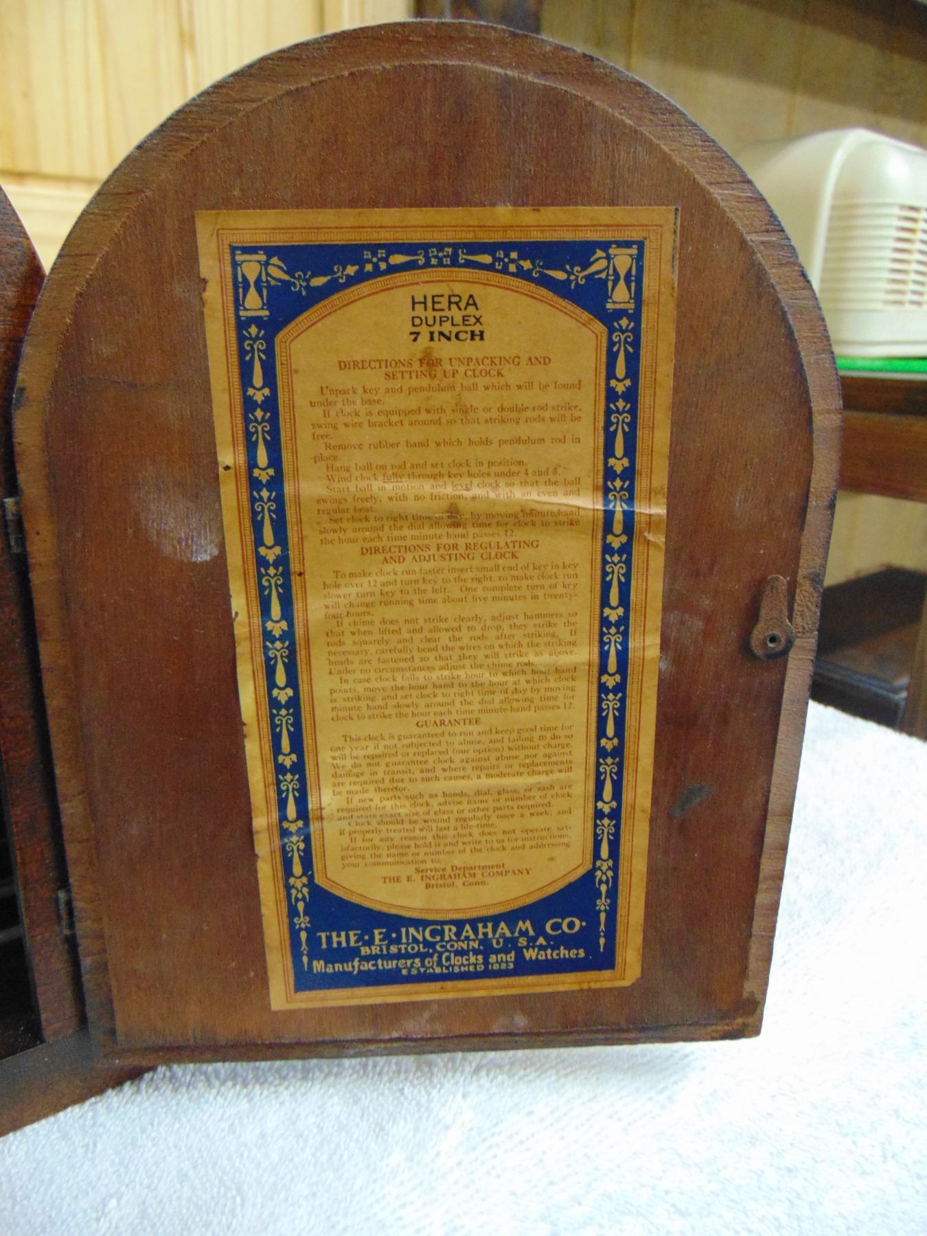 Ingraham time and strike mantle clock; includes pendulum; no key; nice