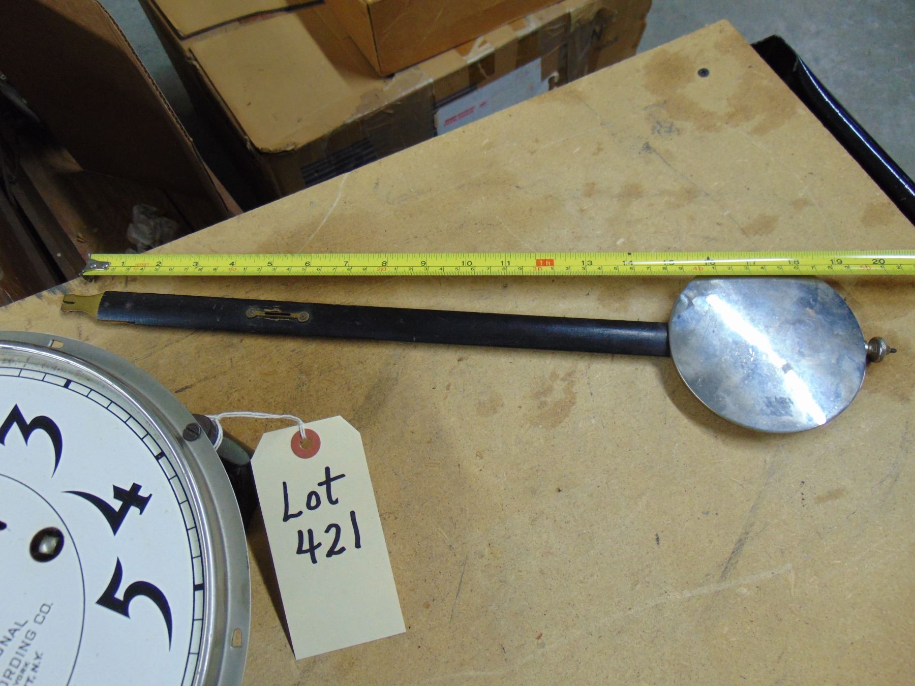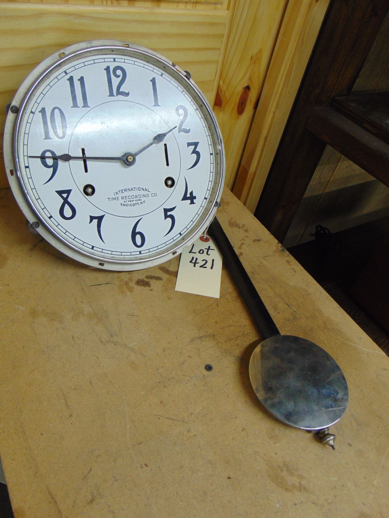 IBM International Business Machines time clock face and Pendulum only; works Circa 1920s. No key or case
