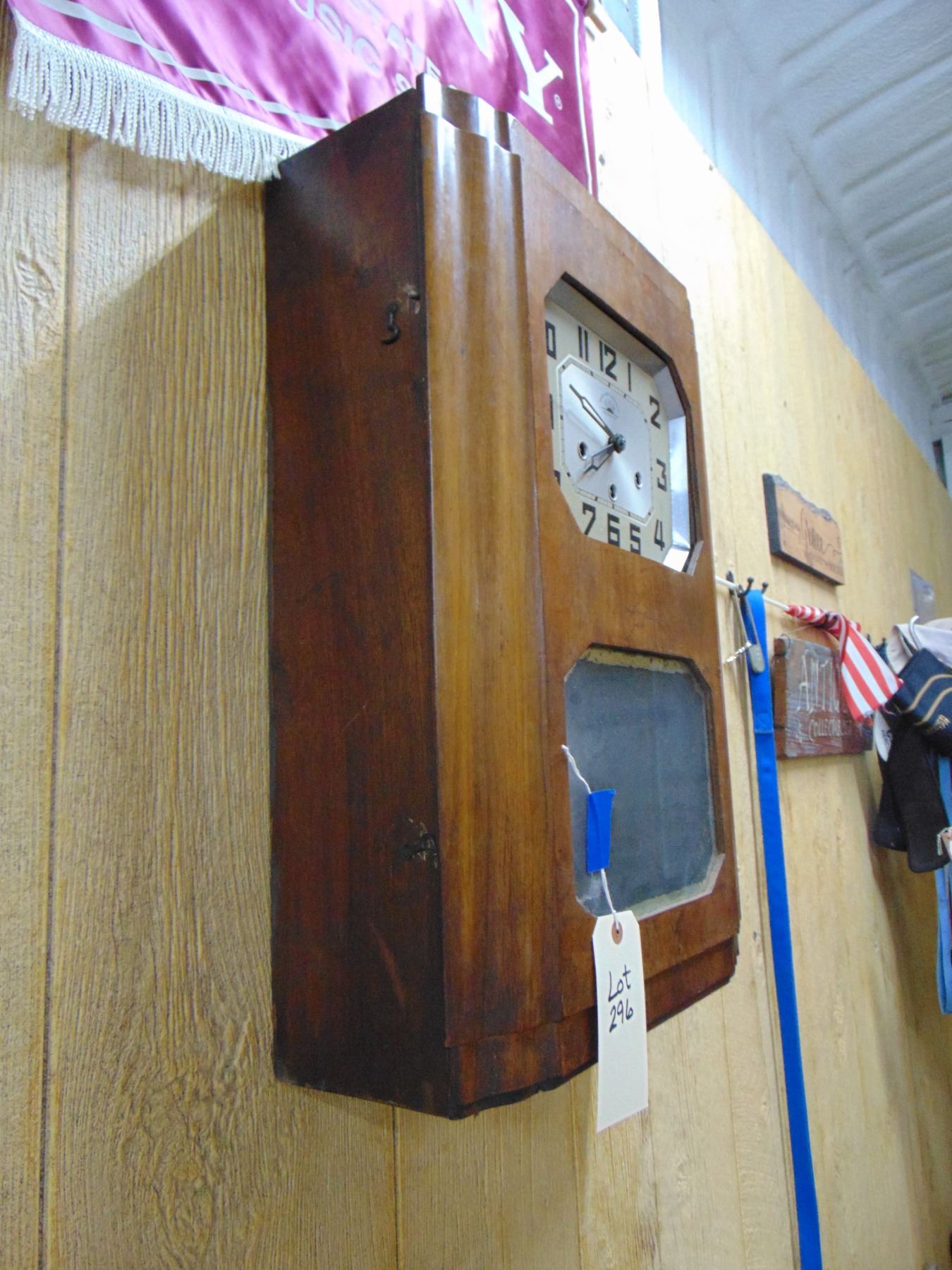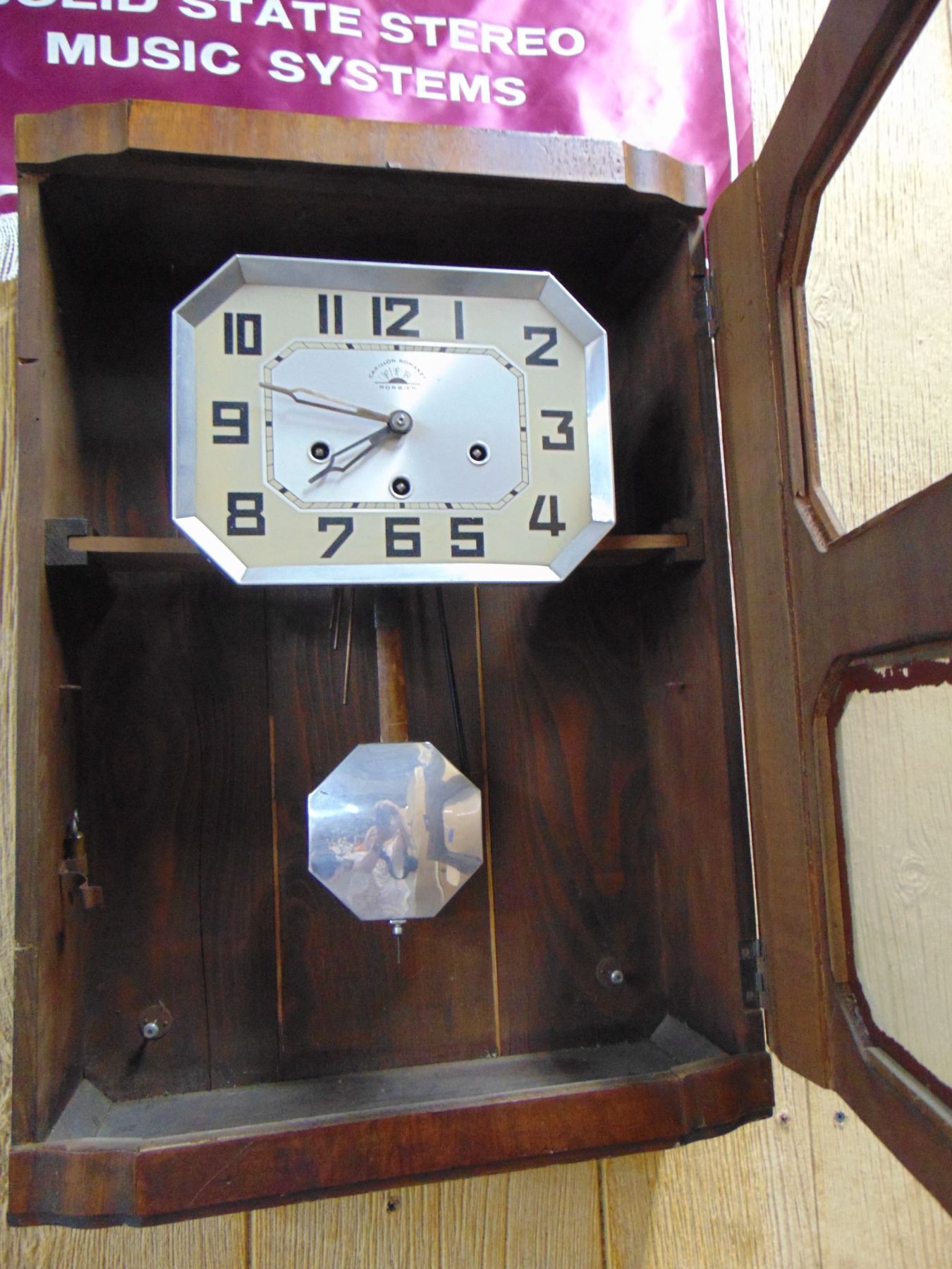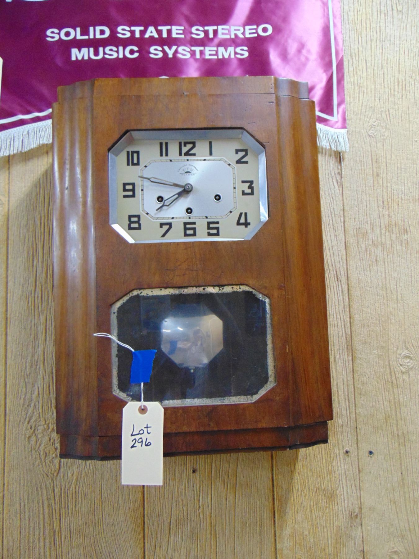 Large wood wall clock; Carillon Romanet Morbier; time and strike; includes key