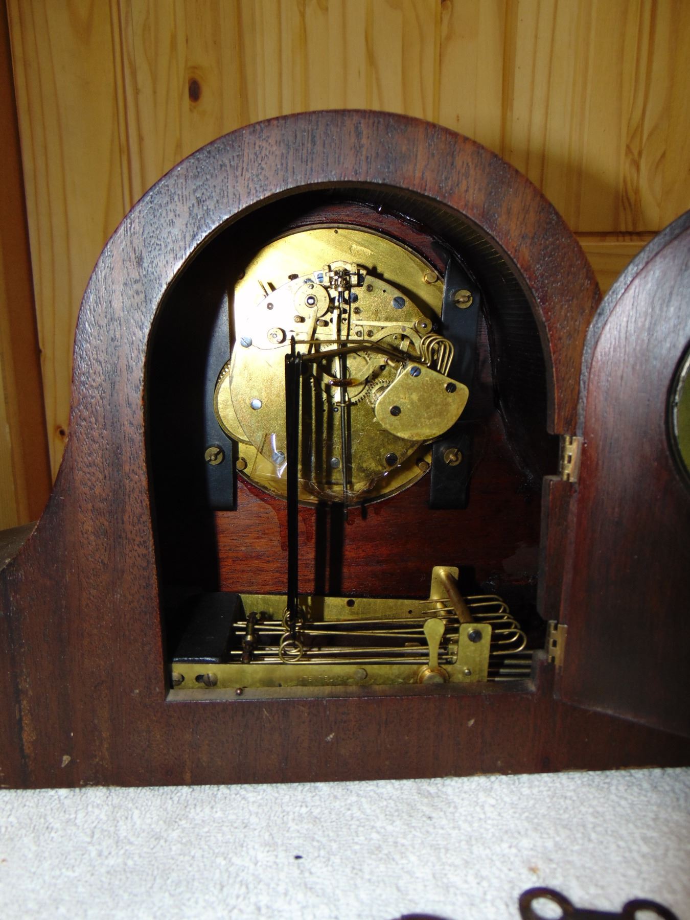 New Haven Clock Co. mantel clock; time and strike; missing dial glass; works
