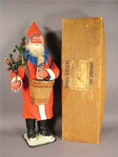Clockwork Santa in original box, European. Very good original condition, w/key. 28 1/2 inches tall.