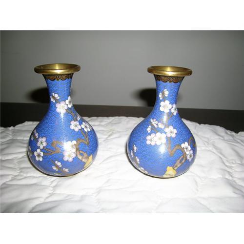 2 Blue Cloisonnes Vases, Cloisonnes over Style. 5 1/2" x 3 1/2". Classical Brass. Price is for both items