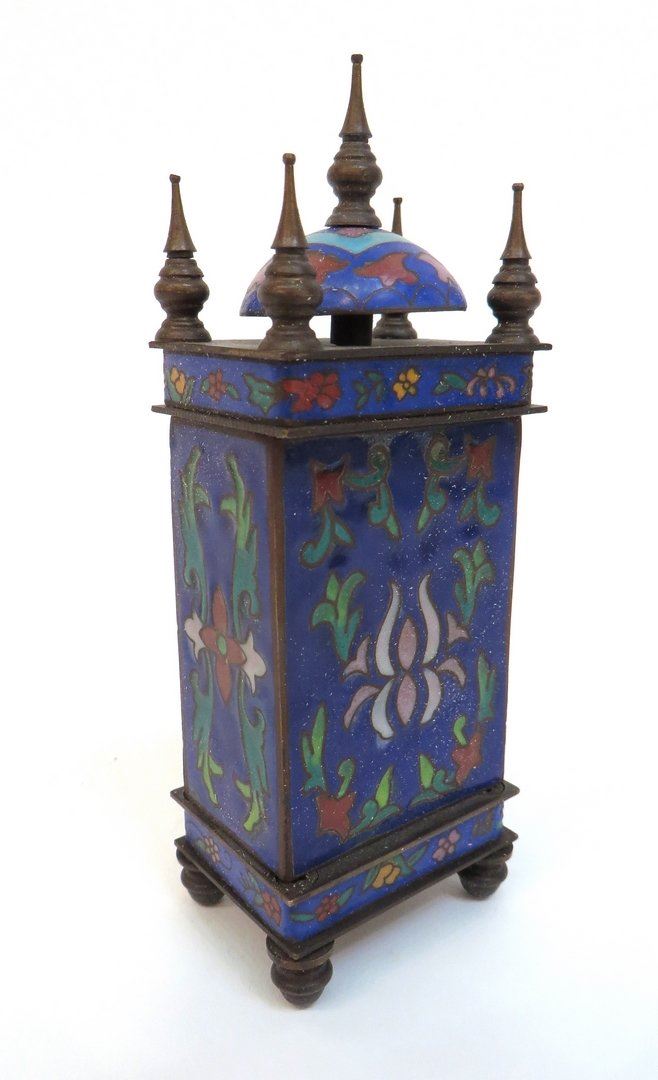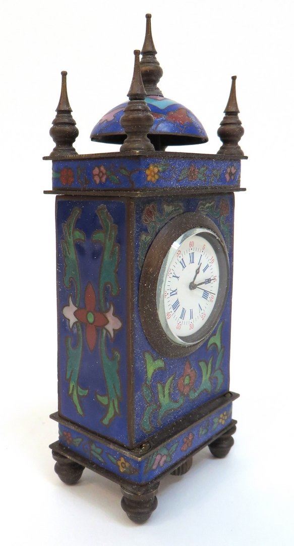Small stem wind mechanical cloisonné desk clock. Runs when wound.
