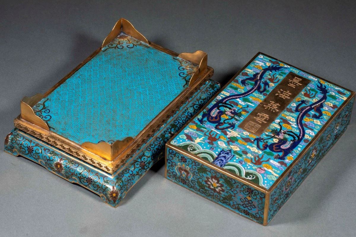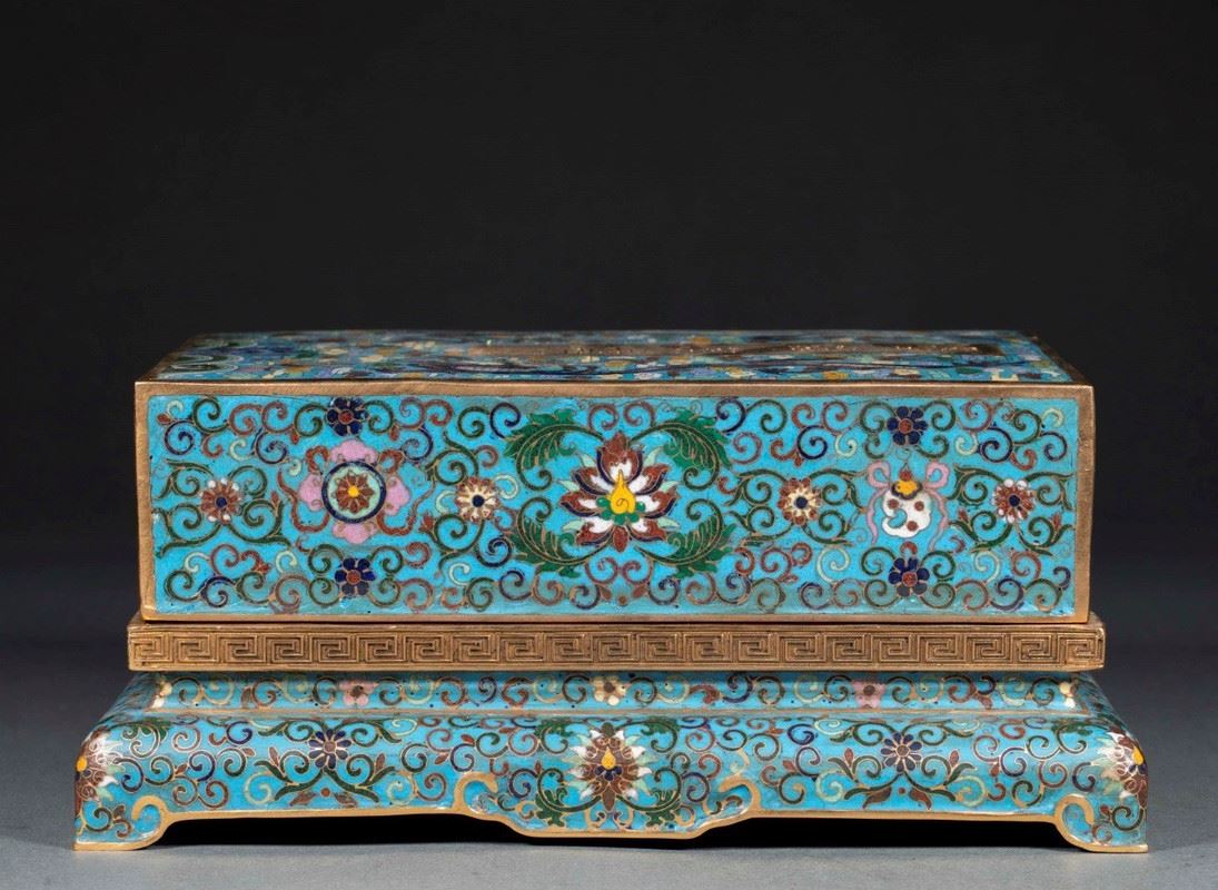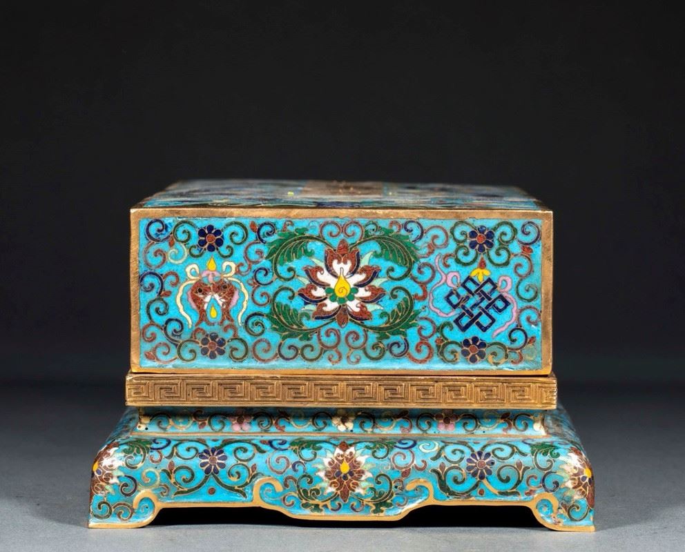 This sutra box is crafted in cloisonné enamel, adorned with intricate floral patterns in vibrant colors, reflecting the exquisite and noble aspects of traditional Eastern culture. The refined design serves not only as a functional item but also as a piece of significant artistic value.