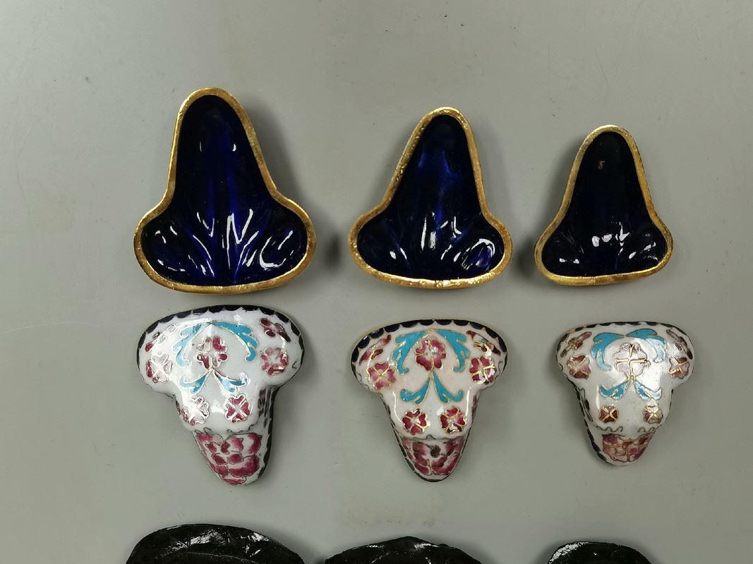 This is a set of three cloisonné frog lidded boxes, each intricately crafted in the shape of a frog and decorated with traditional cloisonné techniques. The vibrant colors and fine details make these pieces truly exquisite. The frog shape is both lively and symbolic, often representing good luck and prosperity. Ideal as a precious art collectible or a unique decorative item.