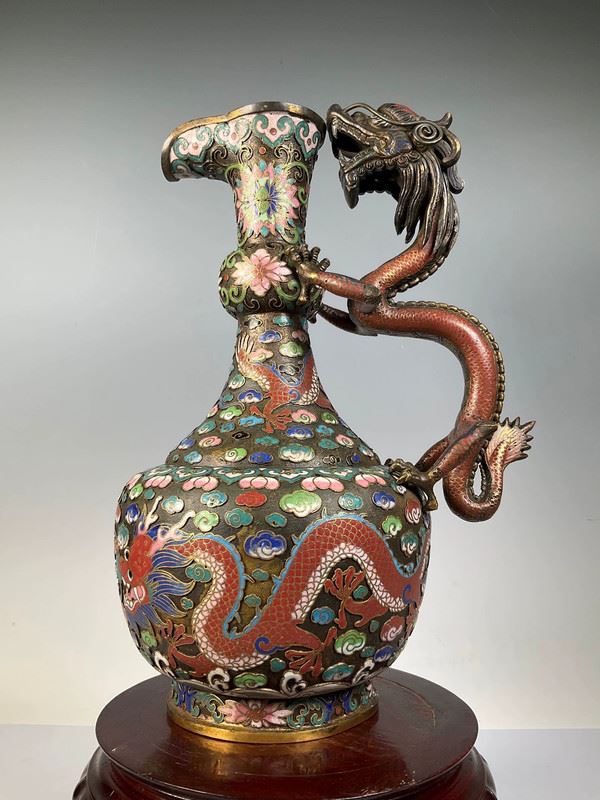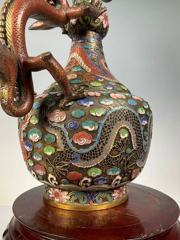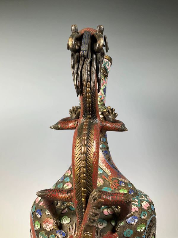 This cloisonné vase with a green base features a windowed design showcasing intricate flower and bird patterns. The vivid floral and bird motifs are beautifully highlighted against the deep green background, with the open window effect adding a unique visual appeal. The colors are vibrant and well-layered, reflecting the craftsmanship of ancient artisans and their deep appreciation for nature's beauty. This vase not only exudes a strong Eastern artistic aura but also embodies the timeless charm of cloisonné craftsmanship.
