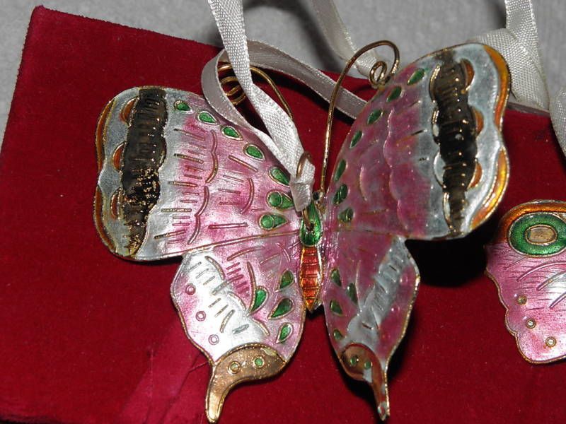Cloisonne Butterflies - Set Of Three - Mint Condition - Each Is Appx 4" Wide