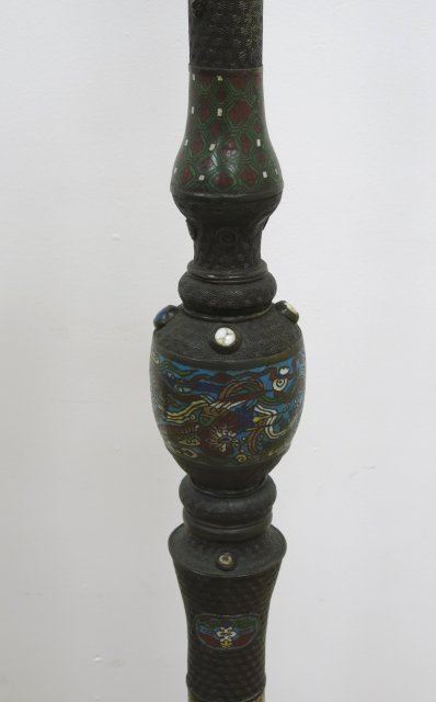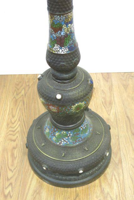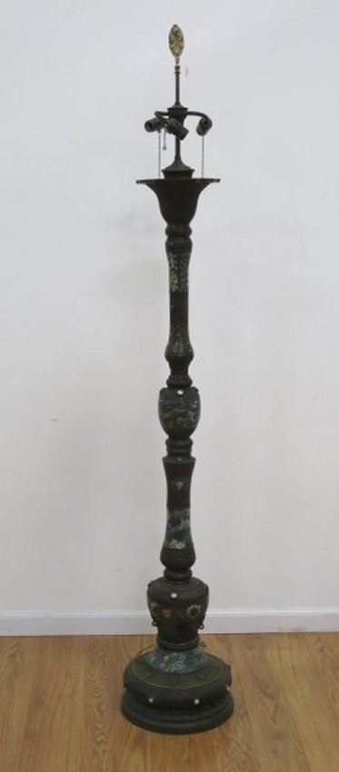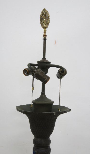 Figural and floral design. Stones set all around. Approx. 59 1/4" H to top of lamp, 75" H to finial top. (4062.37)