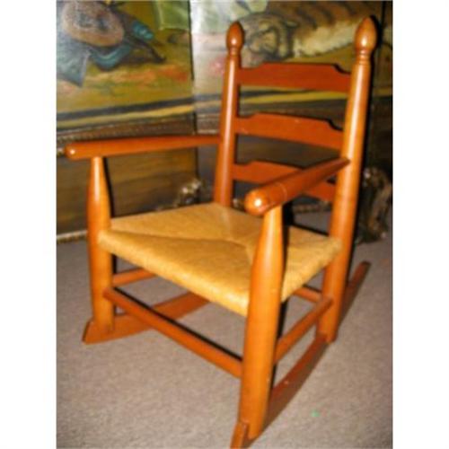 Perfect condition child's rocker made by Clore in Madison County, VA. Check the manufacturer's web site (EACLORE)and you'll see this same rocker for much more. Hand made quality, choice hardwoods, beautiful weaved seat. An heirloom to pass down from generation to generation.