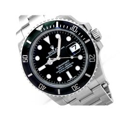40mm Gents Rolex Stainless Steel Oyster Perpetual Submariner Watch. Black Dial. Ceramic Bezel. Stainless Steel Oyster Band. Style 116610.