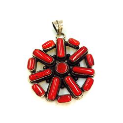Sterling Silver .925 Red Coral Pendant 33.48g