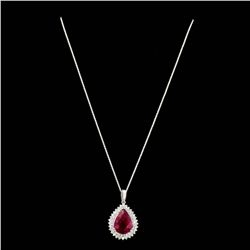 ONE CENTER PEAR SHAPE NATURAL RUBELLITE TOURMALINE TW 19.54CTS, 2.65CTS TW ROUND CUT DIAMONDS, 18K WG PENDANT 9.08GR