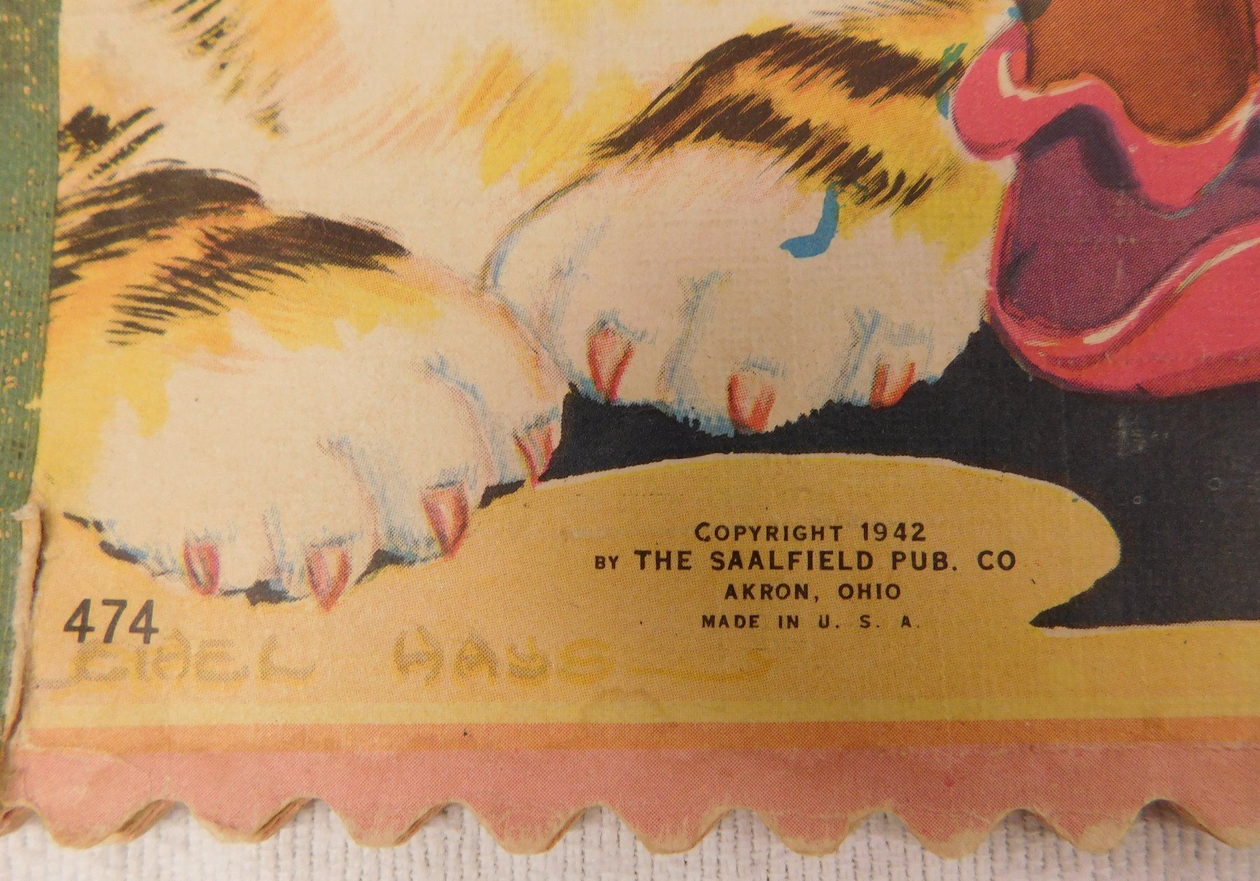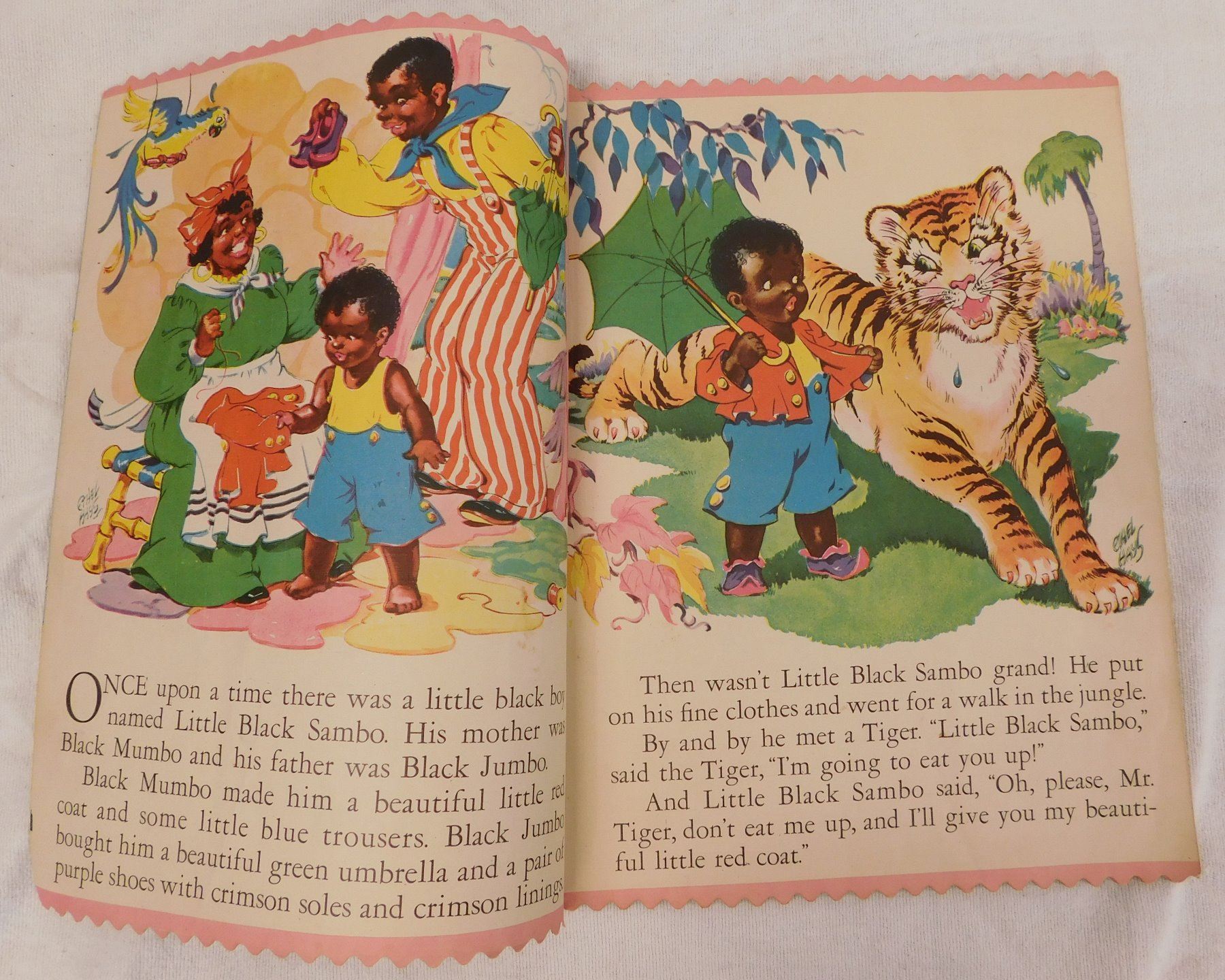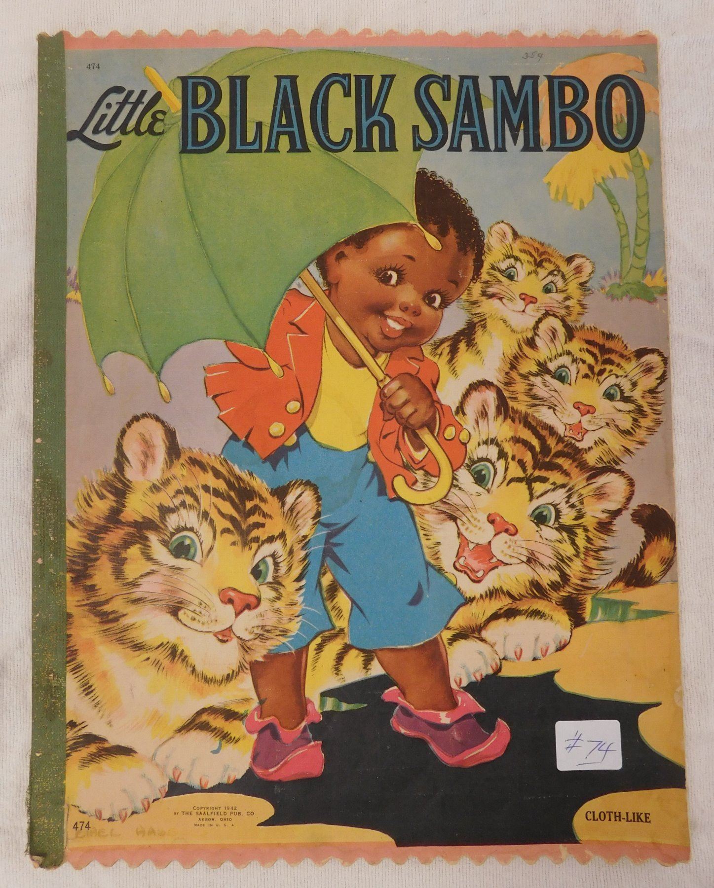 Cloth-Like Black Memorabilia Book, 1945. Made of cloth-like paper, the item measures 13.5" x 10". Ohio, USA. Titled "Little Black Sambo," this book has large illustrations and large type. Condition: Some wear, see images. Shipping: $12.50 w/insurance and signature.